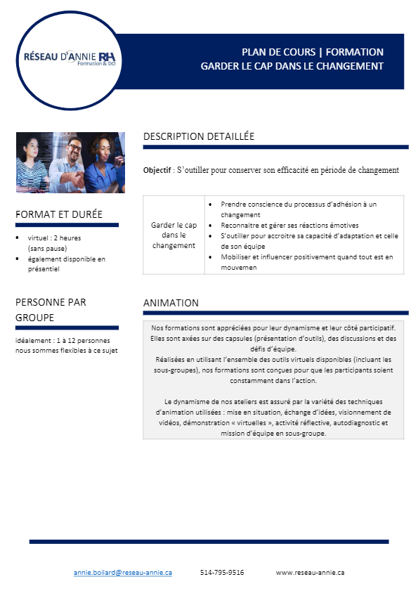 Pour plus d'information sur notre formation Garder le cap dans le changement